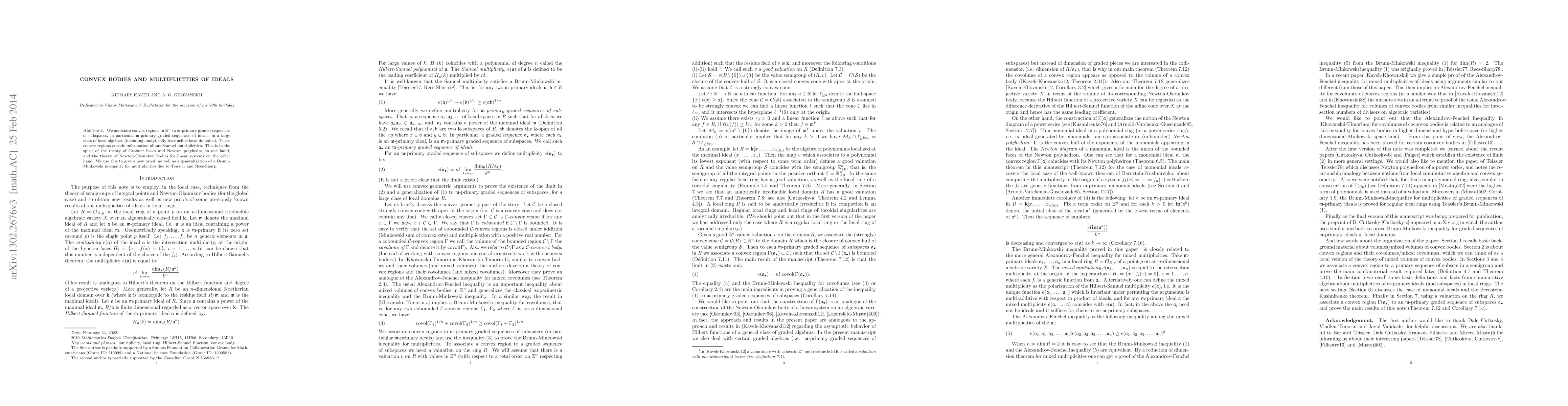This paper associates convex regions in R^n to m-primary graded sequences of ideals in local algebras, encoding information about Samuel multiplicities. It provides a new proof and generalization of a Brunn-Minkowski inequality for multiplicities.