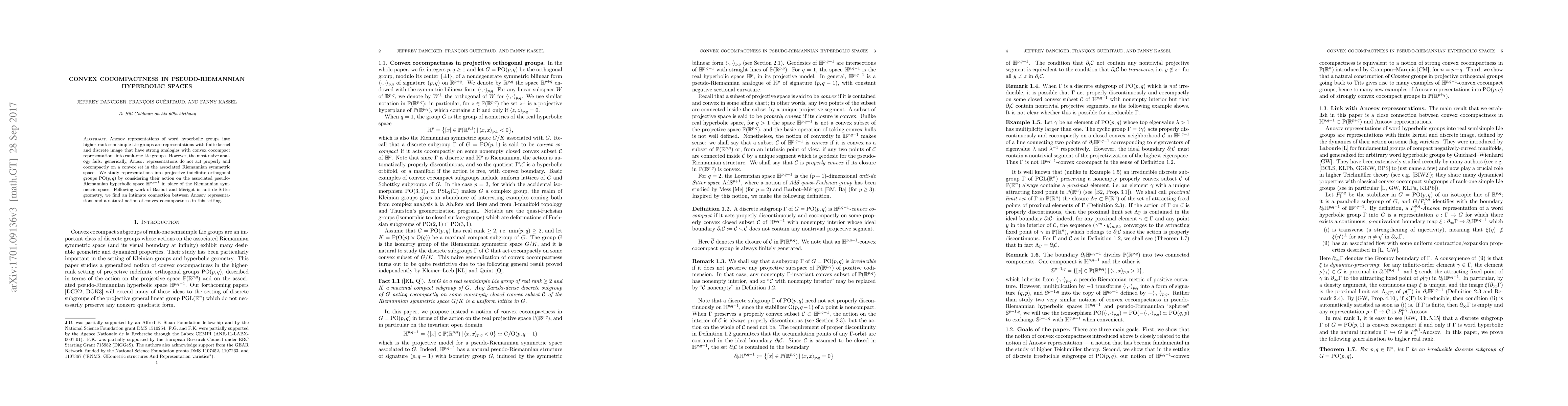 This paper examines Anosov representations of word hyperbolic groups into higher-rank semisimple Lie groups, finding a connection between these representations and convex cocompactness in pseudo-Riemannian hyperbolic spaces, as opposed to Riemannian symmetric spaces. The study highlights that while Anosov representations do not act properly on convex sets in symmetric spaces, they do exhibit convex cocompactness in the associated pseudo-Riemannian hyperbolic spaces.