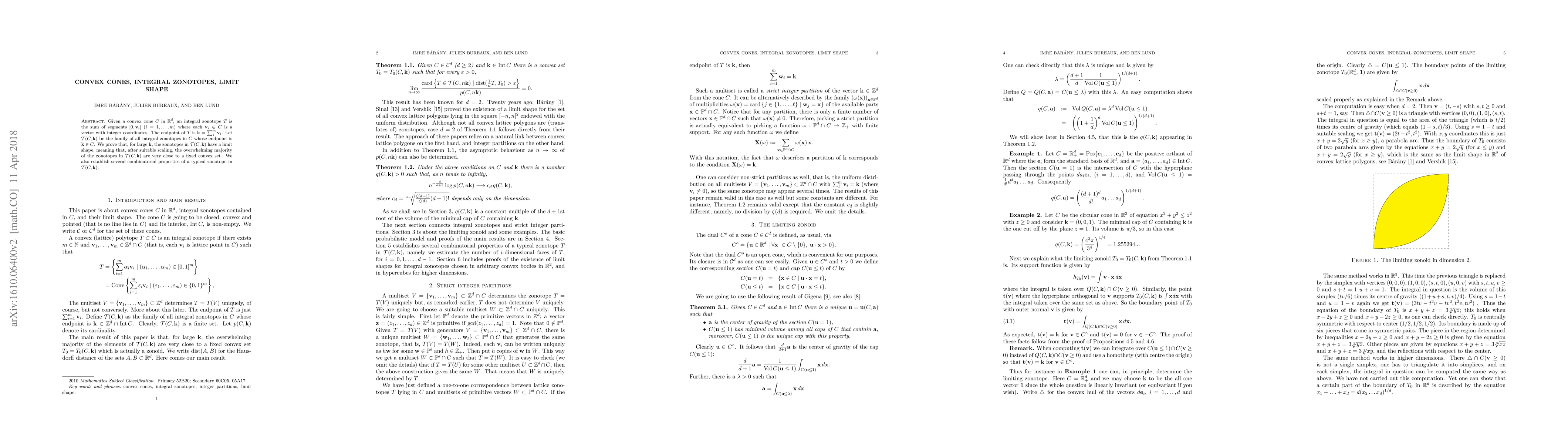 The research extends previous work on convex lattice polygons to integral zonotopes, providing new insights into their limit shapes and probabilistic behavior within convex cones.