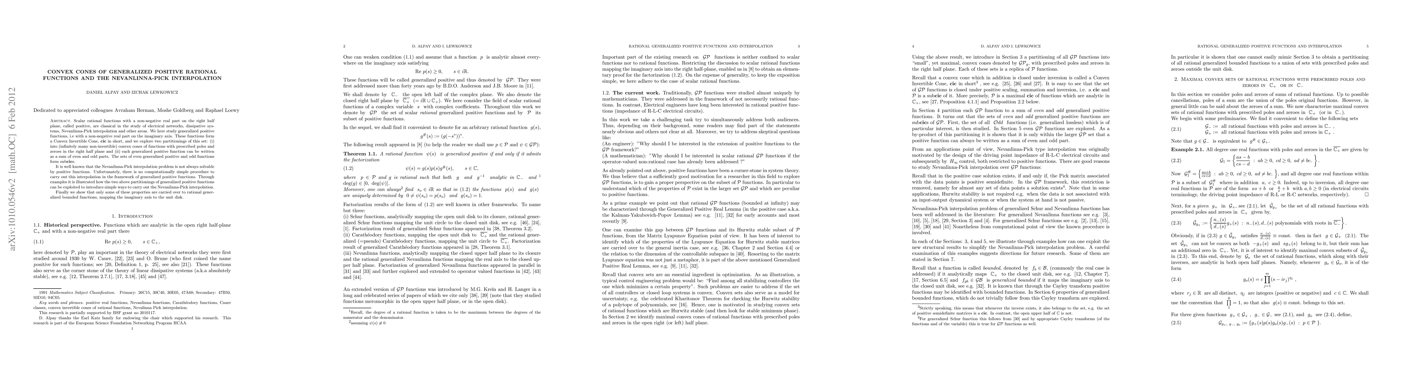 This paper investigates generalized positive rational functions with non-negative real parts on the imaginary axis, forming a Convex Invertible Cone. It explores two partitionings of this cone and introduces a procedure for Nevanlinna-Pick interpolation, while noting limitations in extending these properties to generalized bounded functions.