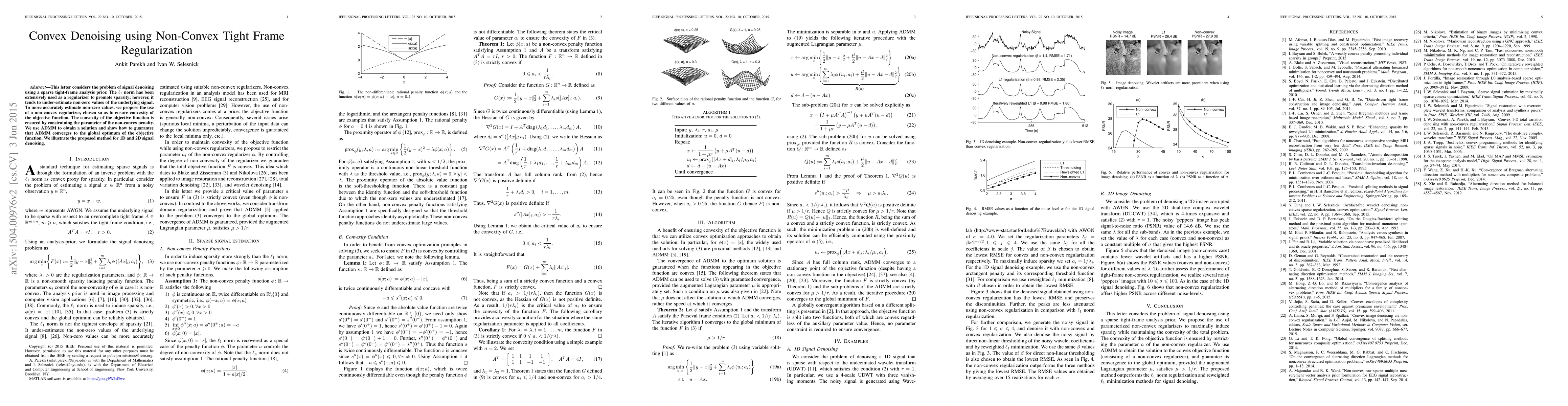 The paper proposes a denoising method using a non-convex regularizer with a sparse tight-frame analysis prior, ensuring convexity of the objective function through parameter constraint. ADMM is employed to solve the convex optimization problem.