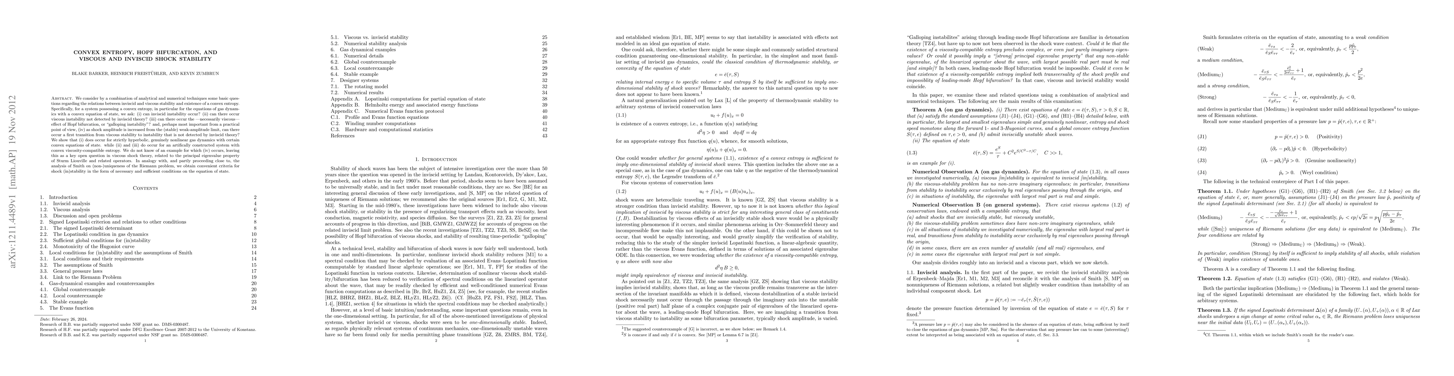 This paper explores the interplay between inviscid and viscous stability in systems with convex entropy, particularly in gas dynamics. It finds that inviscid instability can occur under certain conditions, while viscous instability and Hopf bifurcation can also happen, though not detectable by inviscid theory. The study leaves open the question of whether a transition from viscous stability to instability occurs as shock amplitude increases, without a known example.
