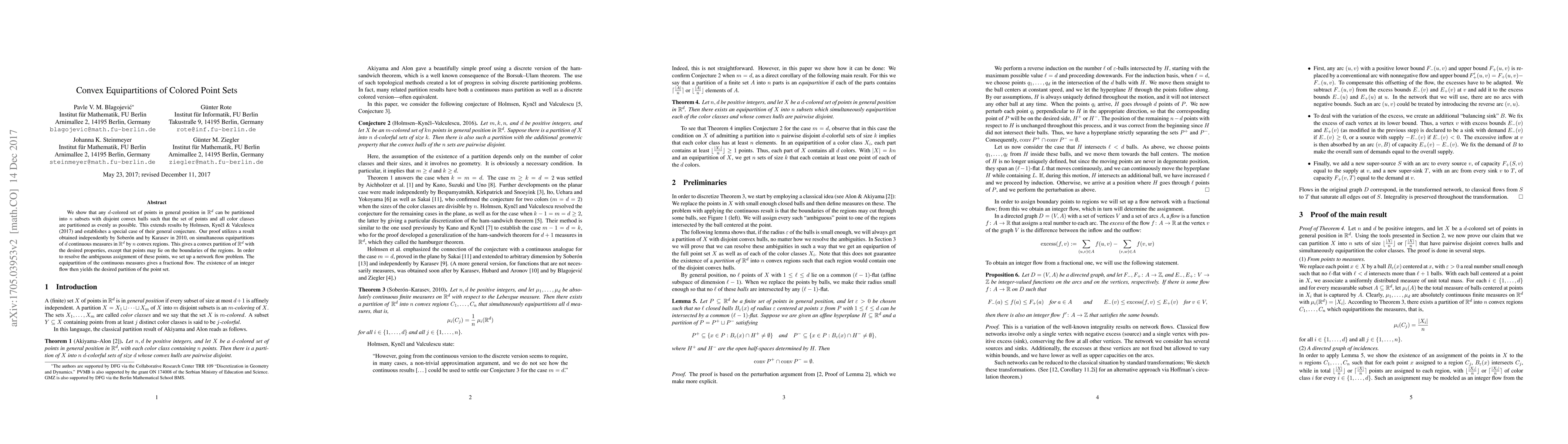 This paper presents a method for partitioning $d$-colored point sets in $\mathbb{R}^d$ into $n$ subsets with disjoint convex hulls, ensuring even distribution of points and color classes. It extends previous results by leveraging a network flow problem to resolve boundary ambiguities.