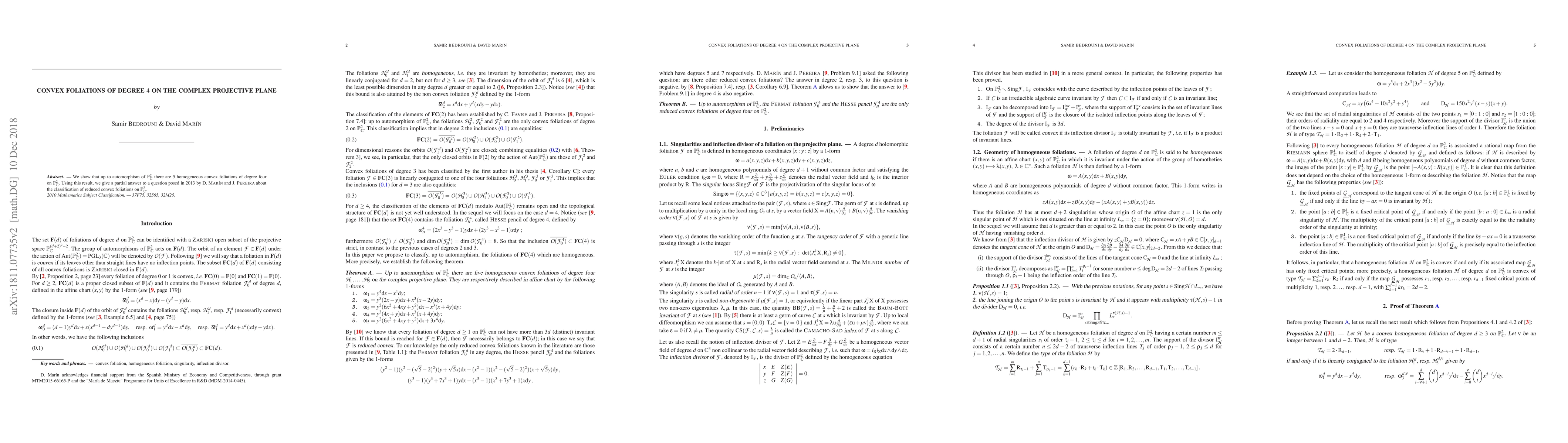 We show that up to automorphisms of $\mathbb{P}^2_{\mathbb C}$ there are $5$ homogeneous convex foliations of degree four on $\mathbb{P}^2_{\mathbb C}.$ Using this result, we give a partial answer to a question posed in $2013$ by D. {Mar\'in} and J. {Pereira} about the classification of reduced convex foliations on~$\mathbb{P}^2_{\mathbb C}.$