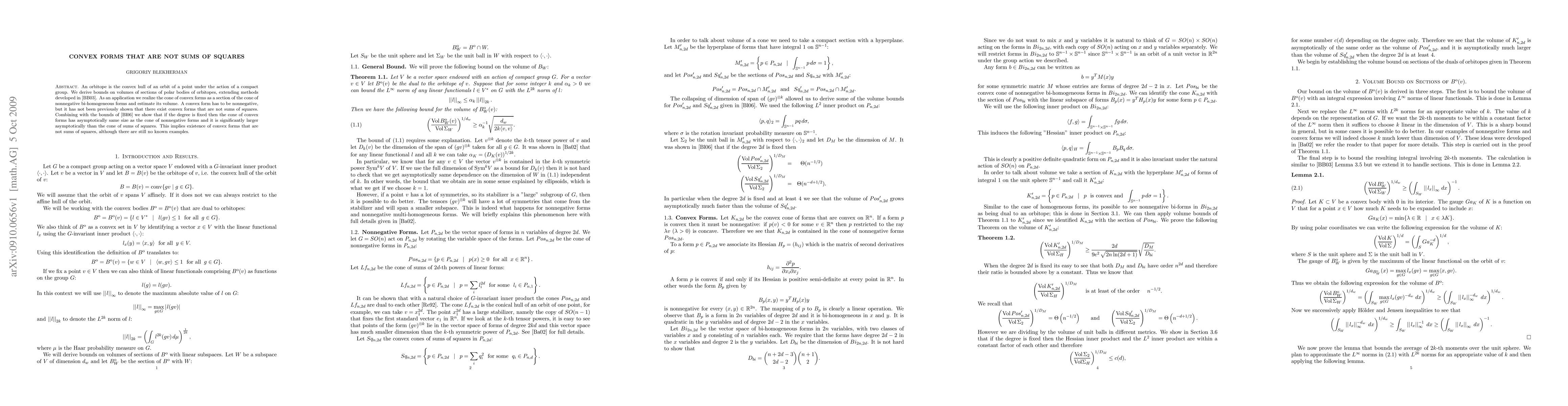 This paper explores the existence of convex forms that are not sums of squares by analyzing orbitopes and their polar bodies. It demonstrates that while convex forms can be nonnegative, they do not necessarily have to be sums of squares, showing that the cone of convex forms is significantly larger than the cone of sums of squares asymptotically.
