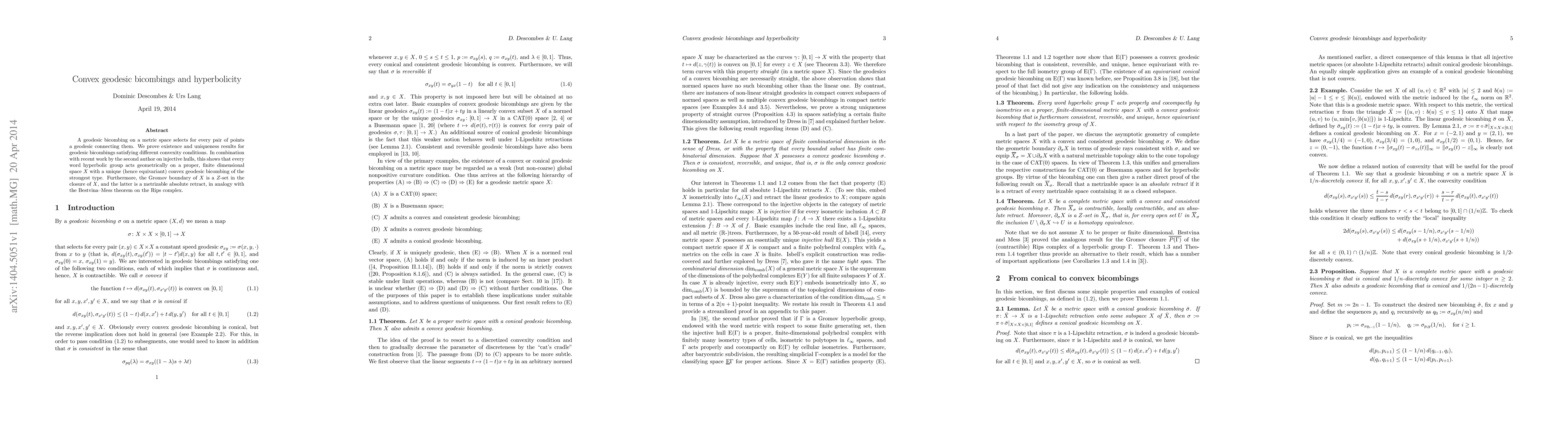 This paper proves the existence and uniqueness of convex geodesic bicombings in proper, finite-dimensional spaces, showing that every word hyperbolic group acts geometrically on such a space with a unique convex geodesic bicombing. It also establishes that the Gromov boundary of this space is a Z-set in its closure, analogous to the Bestvina-Mess theorem on the Rips complex.