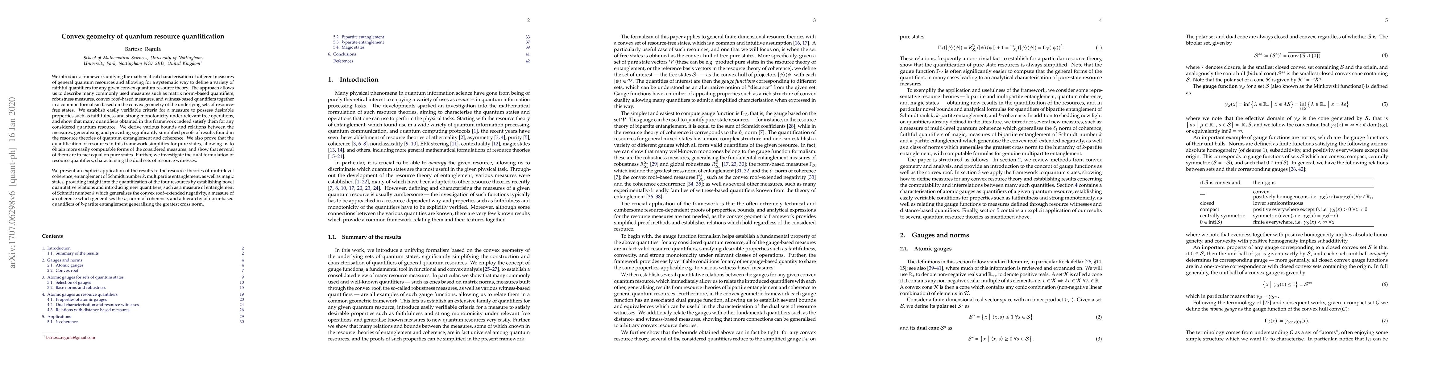 This paper develops a unified mathematical framework for quantifying various quantum resources using convex geometry, establishing criteria for desirable properties like faithfulness and strong monotonicity. It simplifies and generalizes existing results in quantum entanglement and coherence, and introduces new quantifiers for specific resources.