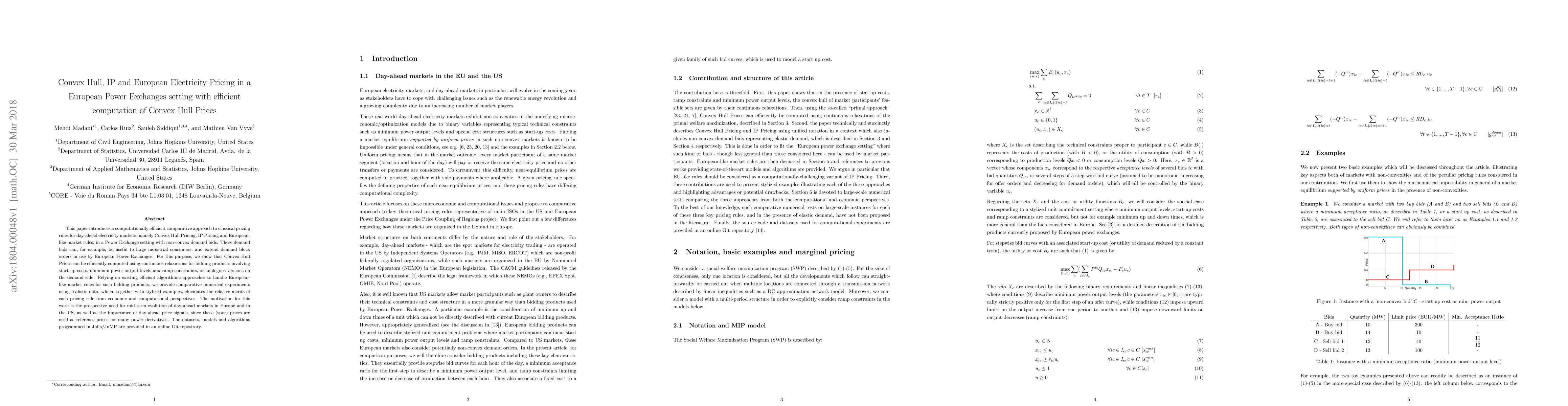 This paper proposes efficient computational methods for pricing rules in European electricity markets, specifically Convex Hull Pricing, IP Pricing, and European-like market rules, using continuous relaxations for complex demand bids. Comparative numerical experiments highlight the economic and computational advantages of each pricing rule, motivated by the evolving day-ahead markets in Europe and the US.