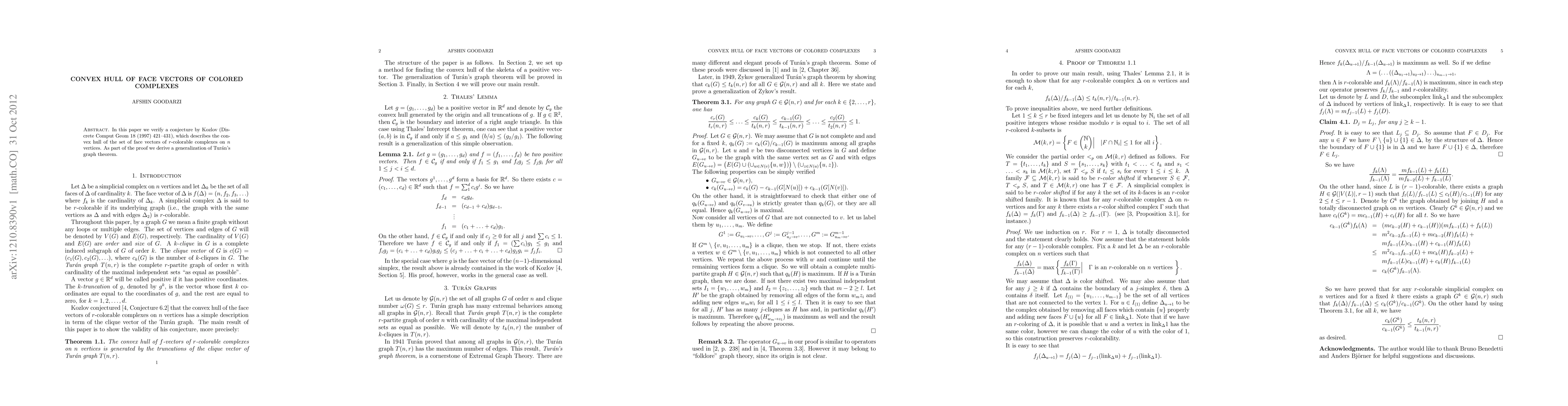 In this paper we verify a conjecture by Kozlov (Discrete Comput Geom 18 (1997) 421--431), which describes the convex hull of the set of face vectors of $r$-colorable complexes on $n$ vertices. As part of the proof we derive a generalization of Tur\'{a}n's graph theorem.