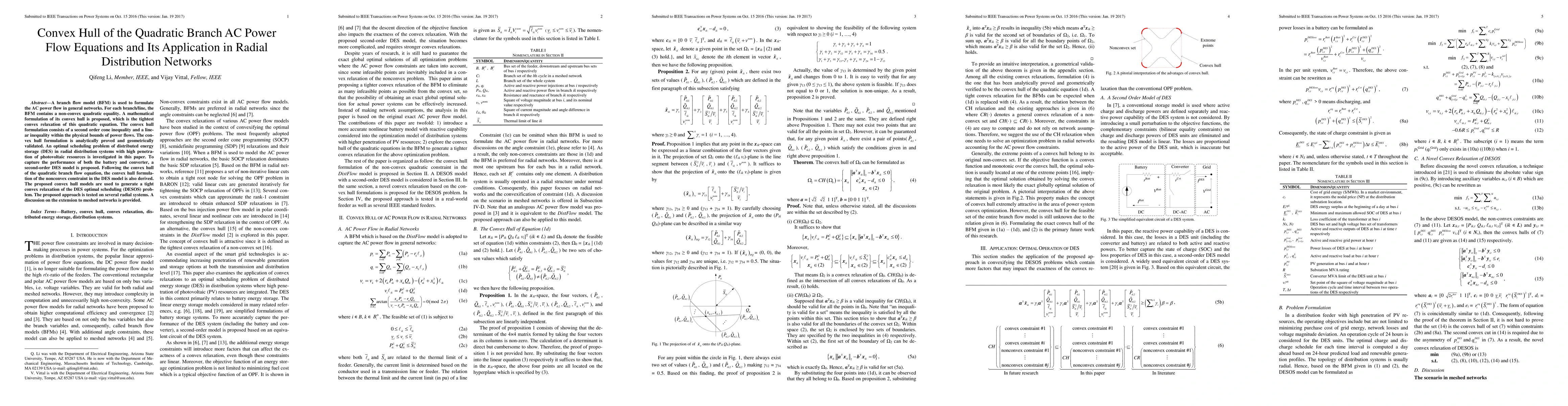 This paper proposes a convex hull formulation for the quadratic branch flow equations in AC power flow, transforming the nonconvex problem into a convex one using a second-order cone inequality. It applies this to optimize distributed energy storage scheduling in radial distribution networks, demonstrating its effectiveness through testing on various systems.