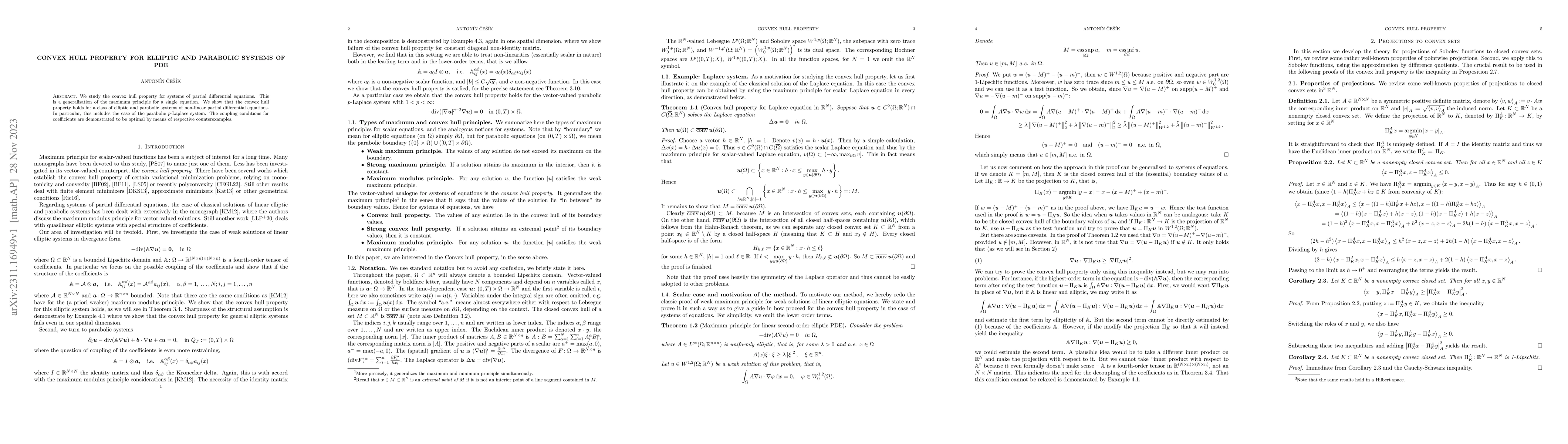 This paper generalizes the maximum principle to elliptic and parabolic systems of non-linear PDEs, proving the convex hull property for these systems, including the $p$-Laplace system. Optimal coupling conditions for coefficients are shown through counterexamples.