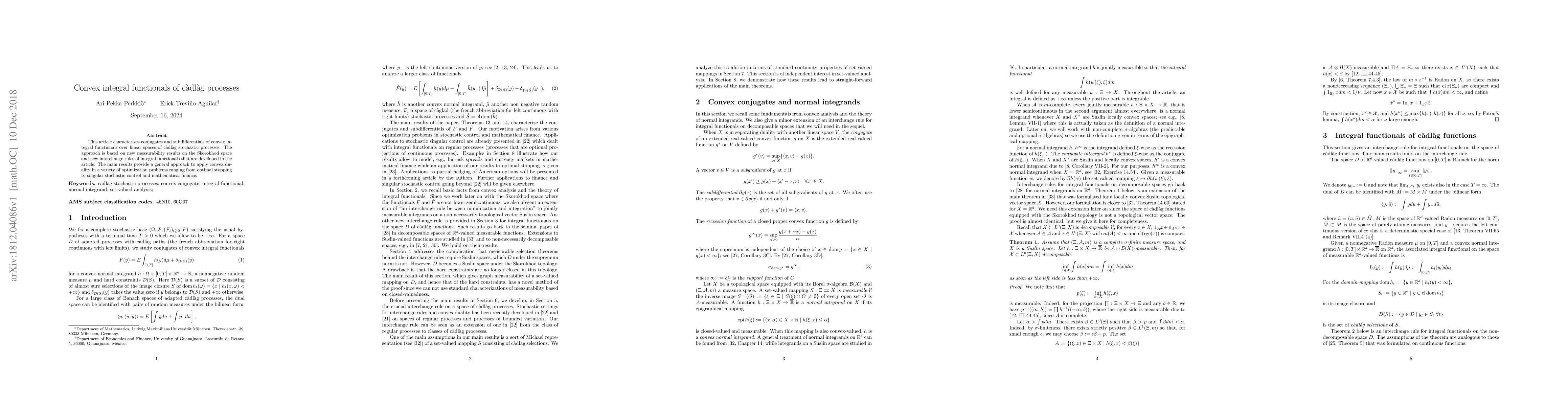 This paper develops new measurability results and interchange rules for convex integral functionals of cadlag stochastic processes, facilitating the application of convex duality in diverse optimization problems including optimal stopping and stochastic control.