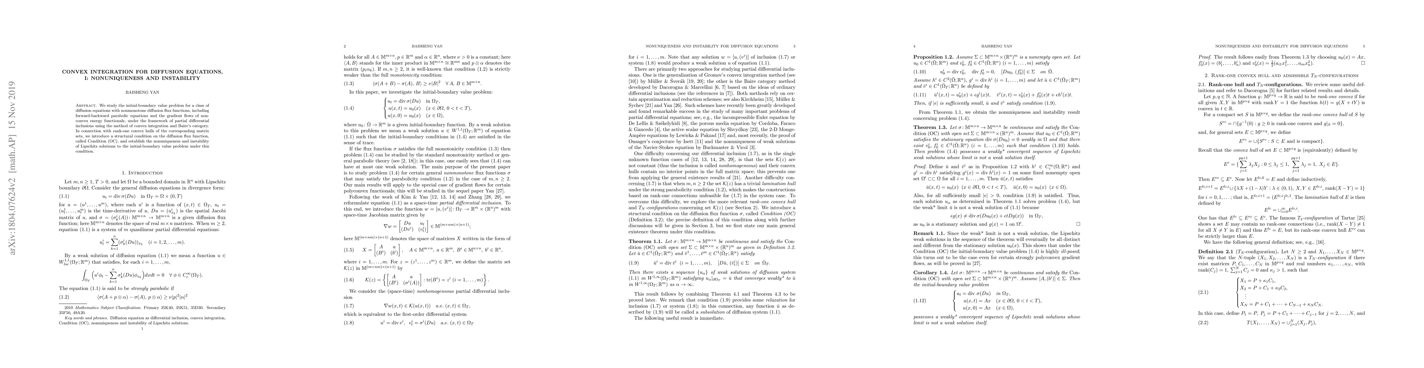 This research paper studies diffusion equations with nonmonotone diffusion flux functions, showing that certain conditions lead to nonuniqueness and instability of solutions.