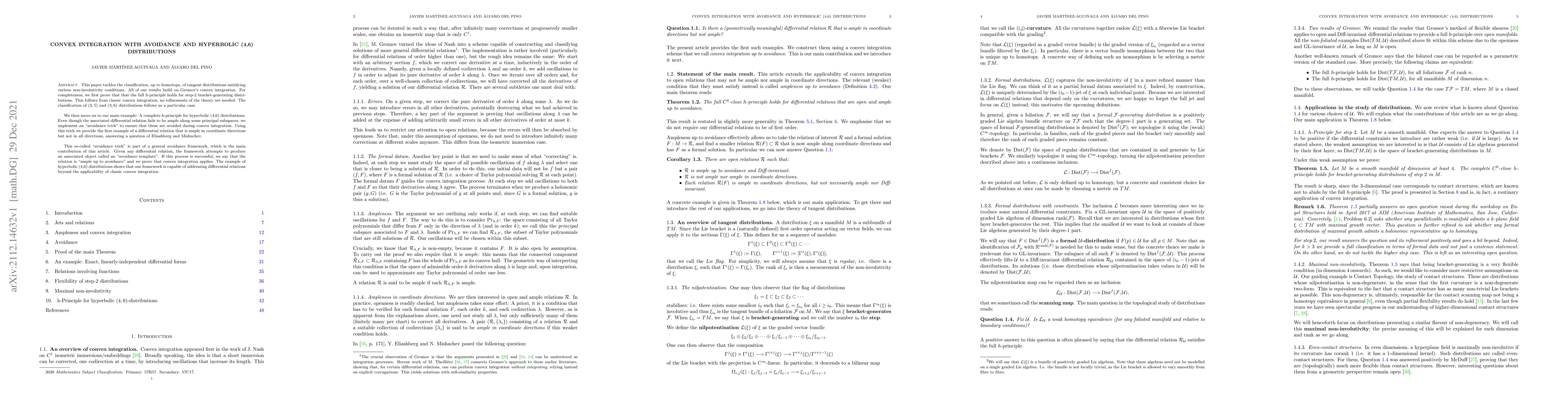 This paper tackles the classification, up to homotopy, of tangent distributions satisfying various non-involutivity conditions. All of our results build on Gromov's convex integration. For completeness, we first prove that that the full h-principle holds for step-2 bracket-generating distributions. This follows from classic convex integration, no refinements of the theory are needed. The classification of (3,5) and (3,6) distributions follows as a particular case. We then move on to our main example: A complete h-principle for hyperbolic (4,6) distributions. Even though the associated differential relation fails to be ample along some principal subspaces, we implement an "avoidance trick" to ensure that these are avoided during convex integration. Using this trick we provide the first example of a differential relation that is ample in coordinate directions but not in all directions, answering a question of Eliashberg and Mishachev. This so-called "avoidance trick" is part of a general avoidance framework, which is the main contribution of this article. Given any differential relation, the framework attempts to produce an associated object called an "avoidance template". If this process is successful, we say that the relation is "ample up to avoidance" and we prove that convex integration applies. The example of hyperbolic (4,6) distributions shows that our framework is capable of addressing differential relations beyond the applicability of classic convex integration.