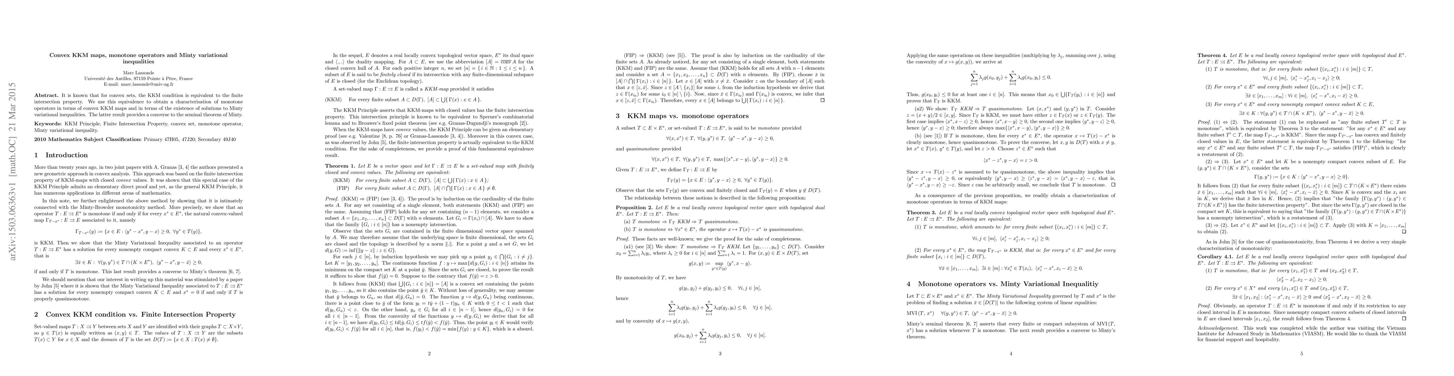 This paper characterizes monotone operators through convex KKM maps and establishes the existence of solutions to Minty variational inequalities, providing a converse to Minty's seminal theorem. The equivalence between the KKM condition and the finite intersection property for convex sets is utilized in these findings.