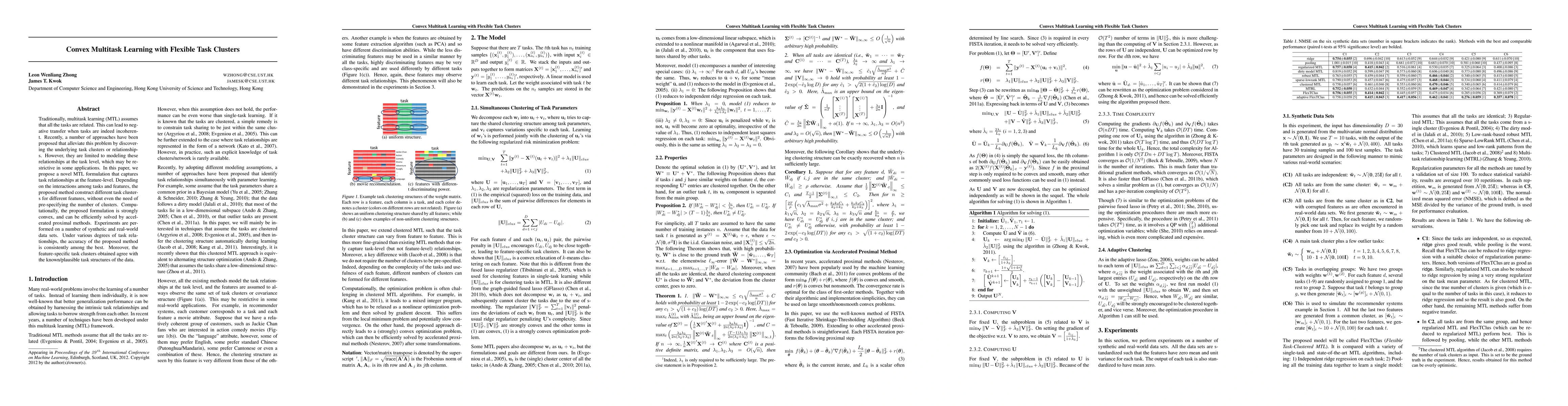 This paper introduces a novel convex multitask learning method that identifies flexible task clusters at the feature-level, allowing for different clusters for different features. The method efficiently solves the strongly convex formulation using accelerated proximal methods, achieving high accuracy across various datasets and aligning with known task structures.