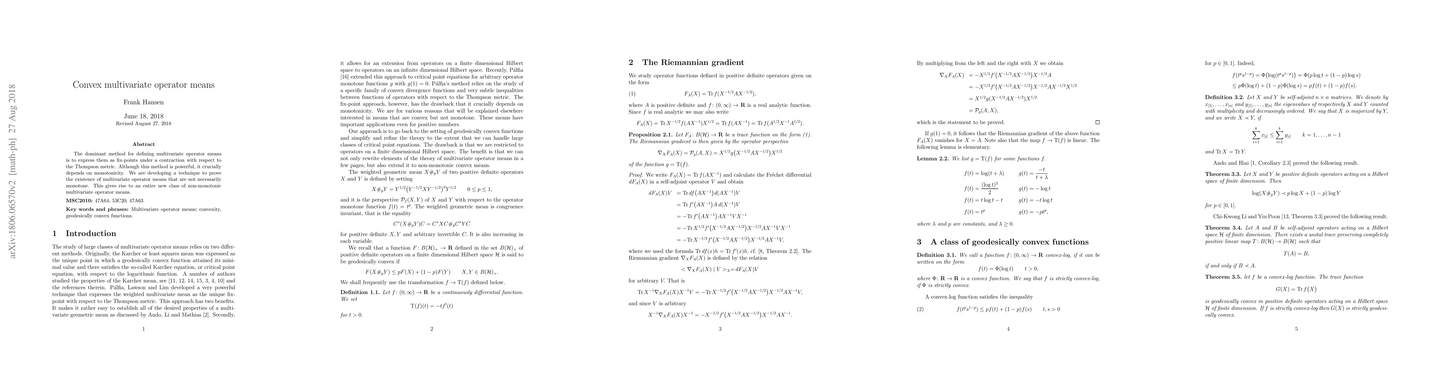 Researchers developed a new method to prove the existence of multivariate operator means that aren't necessarily monotone, expanding the class of non-monotonic operator means.