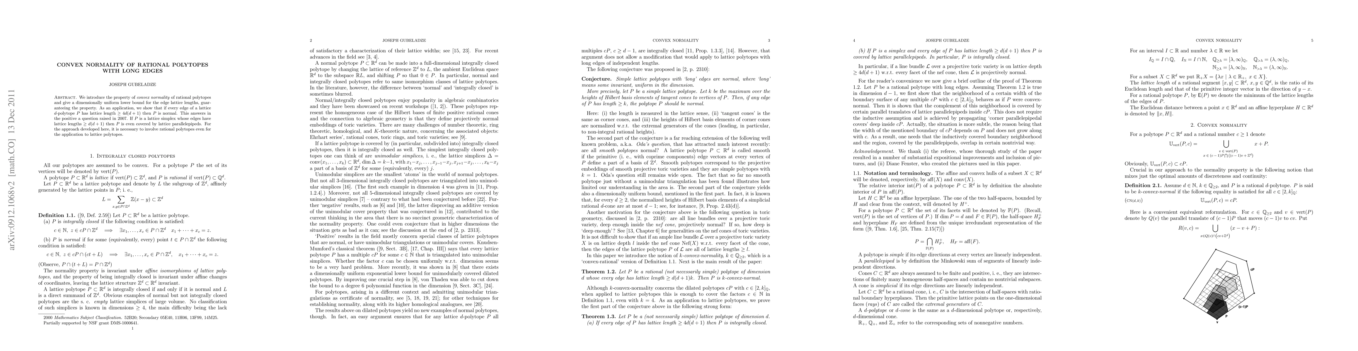 This paper establishes the concept of convex normality for rational polytopes and provides a uniform lower bound for edge lattice lengths to ensure this property. It demonstrates that a lattice d-polytope with edges of length at least 4d(d+1) is normal, answering a 2007 question affirmatively.