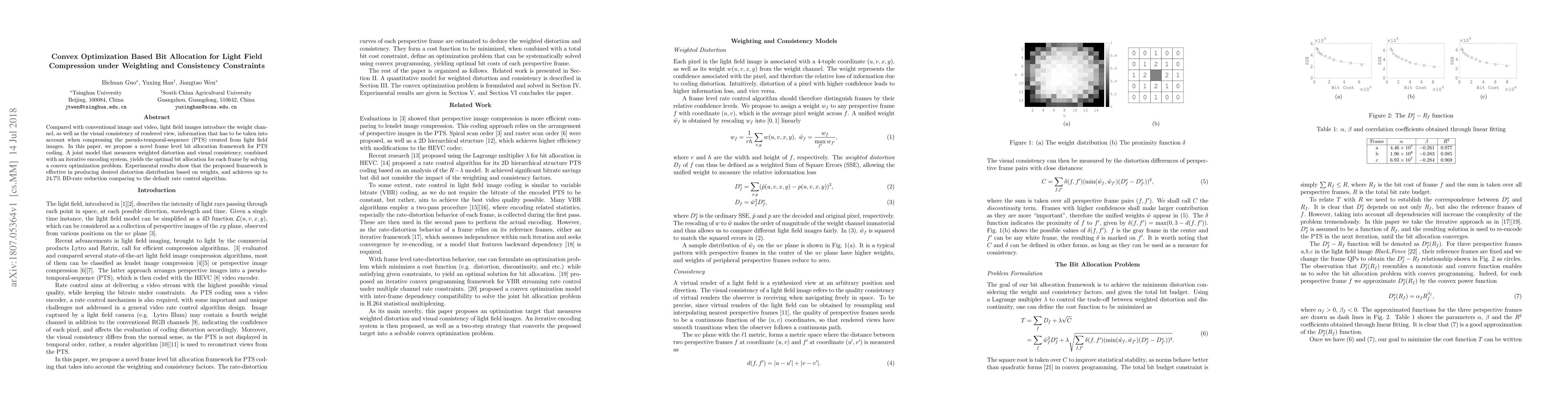 This paper proposes a novel bit allocation framework for light field compression that optimizes weighted distortion and visual consistency, achieving up to 24.7% BD-rate reduction.