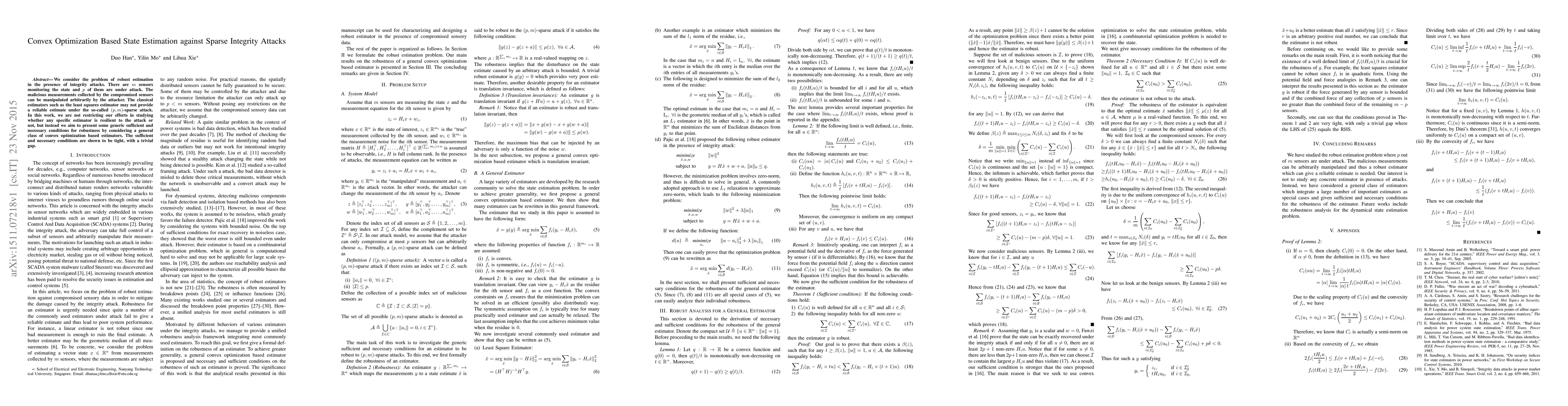 This paper proposes convex optimization-based estimators for robust state estimation against sparse integrity attacks, where a subset of sensors are compromised. It establishes tight sufficient and necessary conditions for the robustness of these estimators, ensuring reliable performance under (p,m)-sparse attack scenarios.