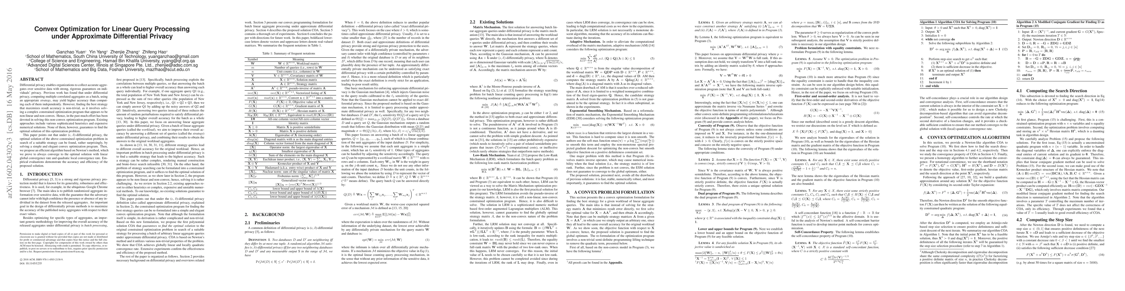 This paper proposes an efficient convex optimization approach to solve the complex non-convex optimization problem of finding the best strategy for linear query processing under differential privacy. The method guarantees convergence to the optimal solution and outperforms existing heuristics and numerical solutions.