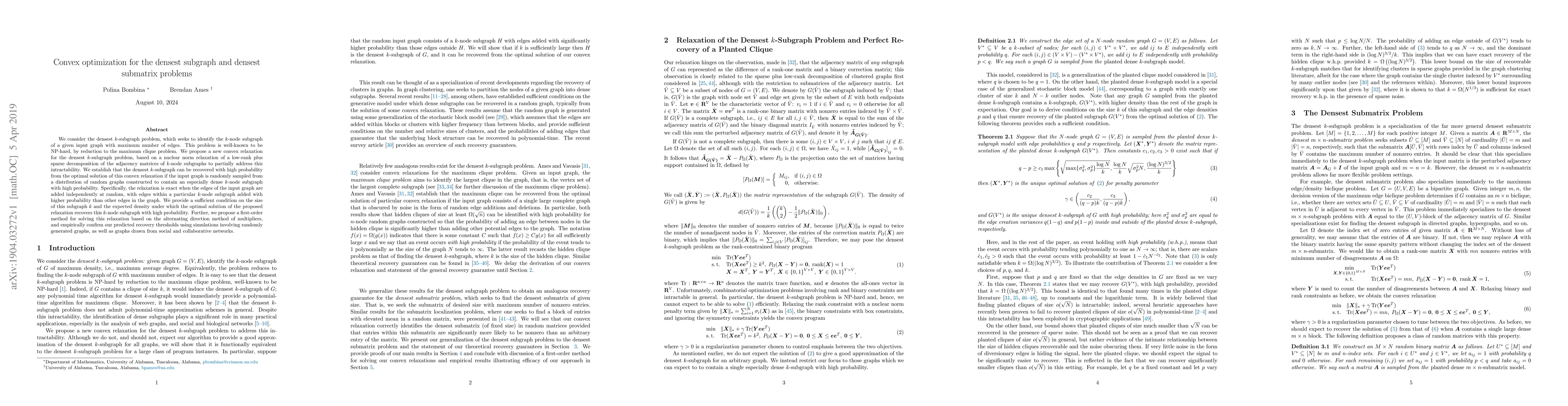 This paper proposes a convex relaxation approach for the NP-hard densest $k$-subgraph problem, utilizing a nuclear norm relaxation to decompose adjacency matrices, and shows it can recover dense subgraphs with high probability in specific random graph models. It also introduces a first-order optimization method based on the alternating direction method of multipliers and validates its effectiveness through simulations.
