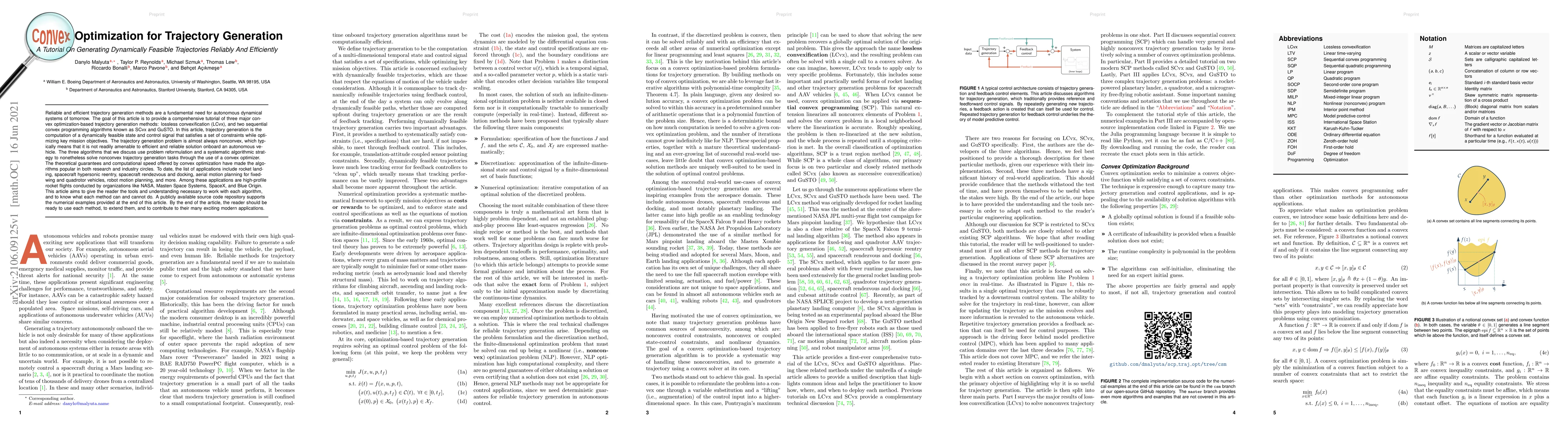 This paper provides a tutorial on three convex optimization-based methods for generating dynamically feasible trajectories for autonomous systems, including lossless convexification (LCvx) and sequential convex programming algorithms SCvx and GuSTO. These methods reformulate nonconvex trajectory problems into convex ones, enabling efficient and reliable onboard solutions.