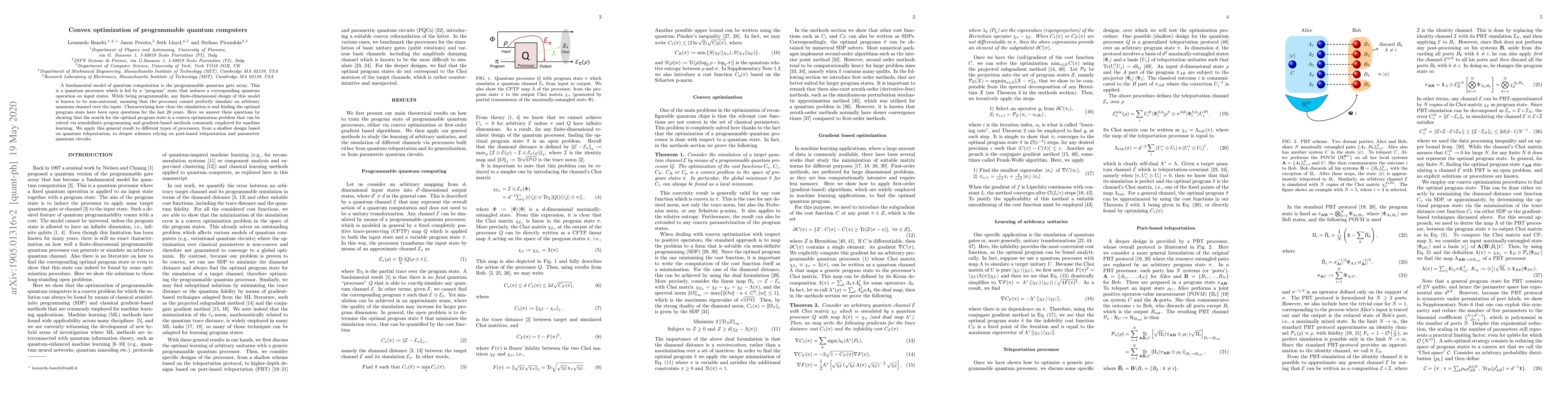 This research solves a 20-year-old problem in quantum computation by proving the optimal program state search for programmable quantum gate arrays is a convex optimization task. It can be addressed using semidefinite programming and machine learning methods, applicable to various processor designs from shallow to deep schemes.