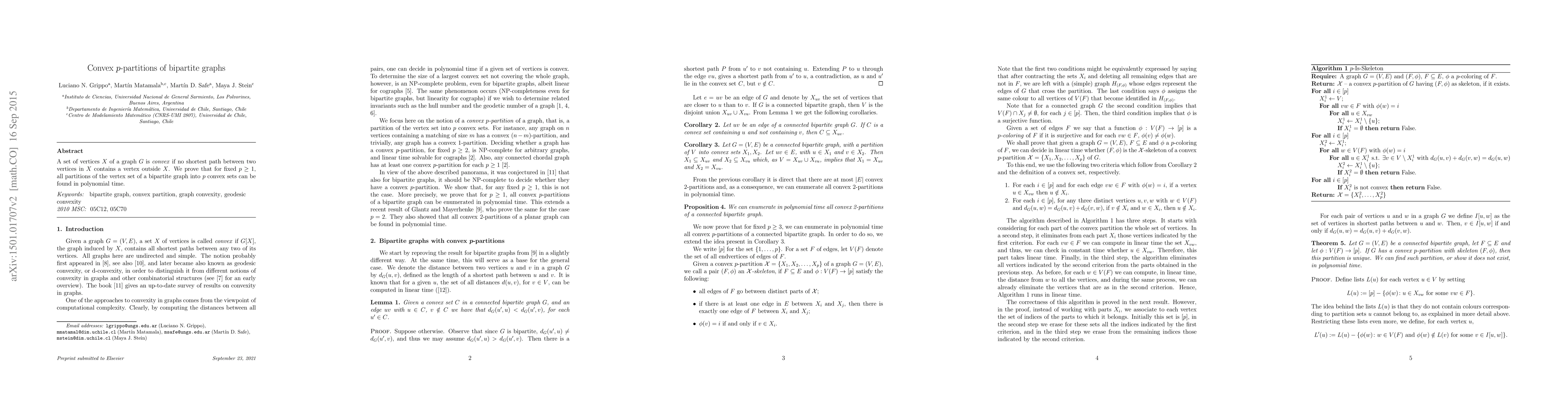 The paper proves that all partitions of a bipartite graph's vertex set into fixed numbers of convex sets can be found in polynomial time.