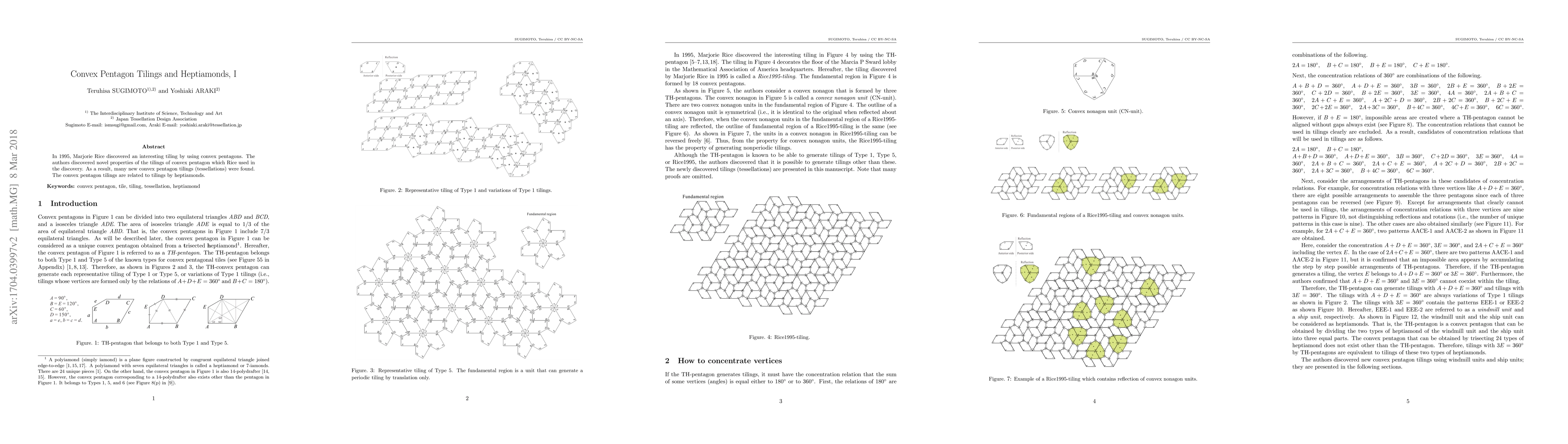 In 1995, Marjorie Rice discovered an interesting tiling by using convex pentagons. The authors discovered novel properties of the tilings of convex pentagon which Rice used in the discovery. As a result, many new convex pentagon tilings (tessellations) were found. The convex pentagon tilings are related to tilings by heptiamonds.