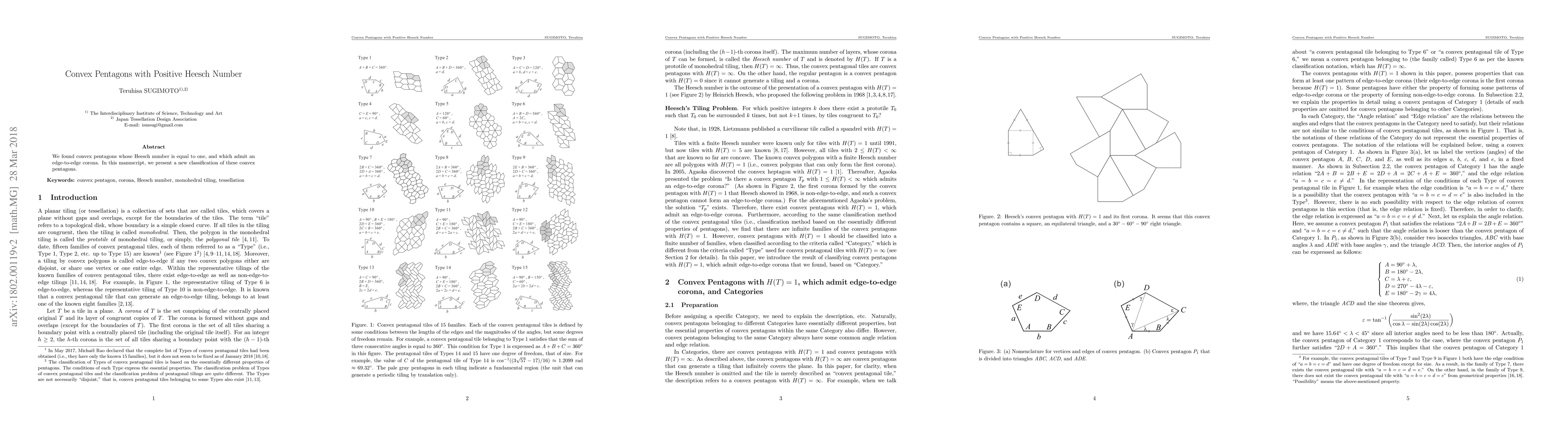 The paper identifies convex pentagons with a Heesch number of one that can form an edge-to-edge corona and introduces a new classification system for these pentagons. The classification focuses on geometric properties and arrangements that maintain this unique characteristic.