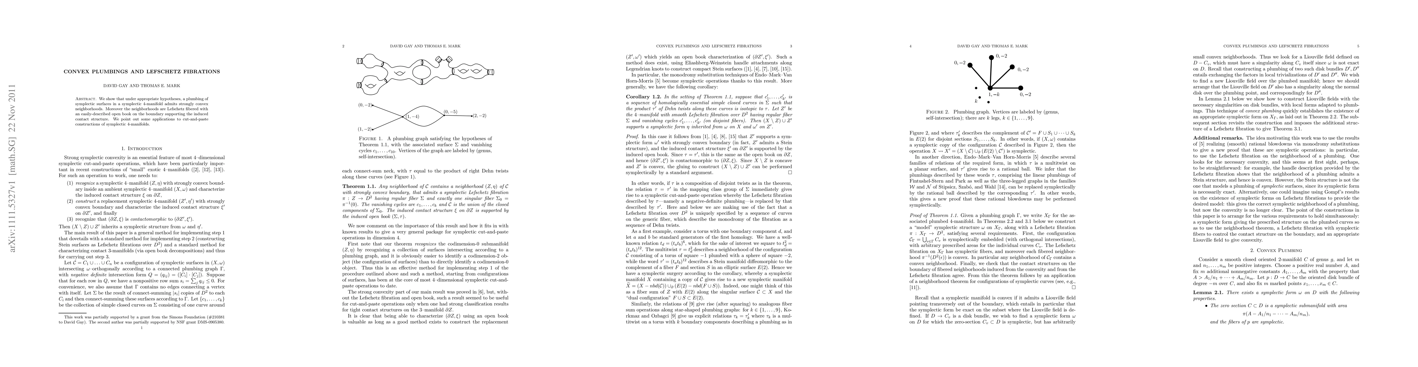 This paper demonstrates that symplectic surface plumbings in a symplectic 4-manifold can be given strongly convex neighborhoods that are Lefschetz fibered, supporting an open book structure for the induced contact structure, with implications for constructing symplectic 4-manifolds through cut-and-paste methods.