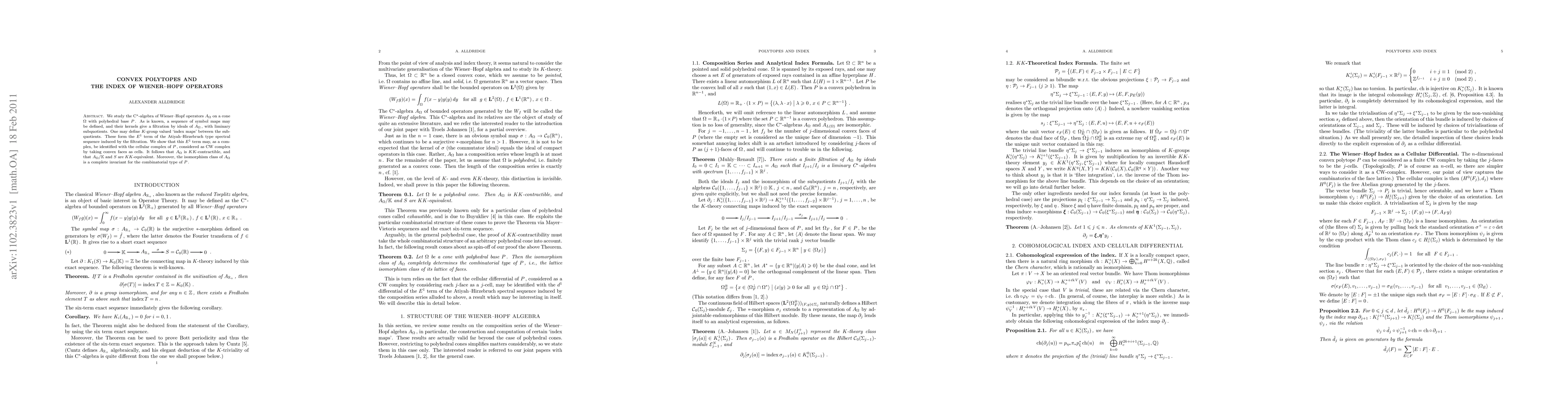 We study the C$^*$-algebra of Wiener-Hopf operators $A_\Omega$ on a cone $\Omega$ with polyhedral base $P$. As is known, a sequence of symbol maps may be defined, and their kernels give a filtration by ideals of $A_\Omega$, with liminary subquotients. One may define $K$-group valued 'index maps' between the subquotients. These form the $E^1$ term of the Atiyah-Hirzebruch type spectral sequence induced by the filtration. We show that this $E^1$ term may, as a complex, be identified with the cellular complex of $P$, considered as CW complex by taking convex faces as cells. It follows that $A_\Omega$ is $KK$-contractible, and that $A_\Omega/\mathbb K$ and $S$ are $KK$-equivalent. Moreover, the isomorphism class of $A_\Omega$ is a complete invariant for the combinatorial type of $P$.