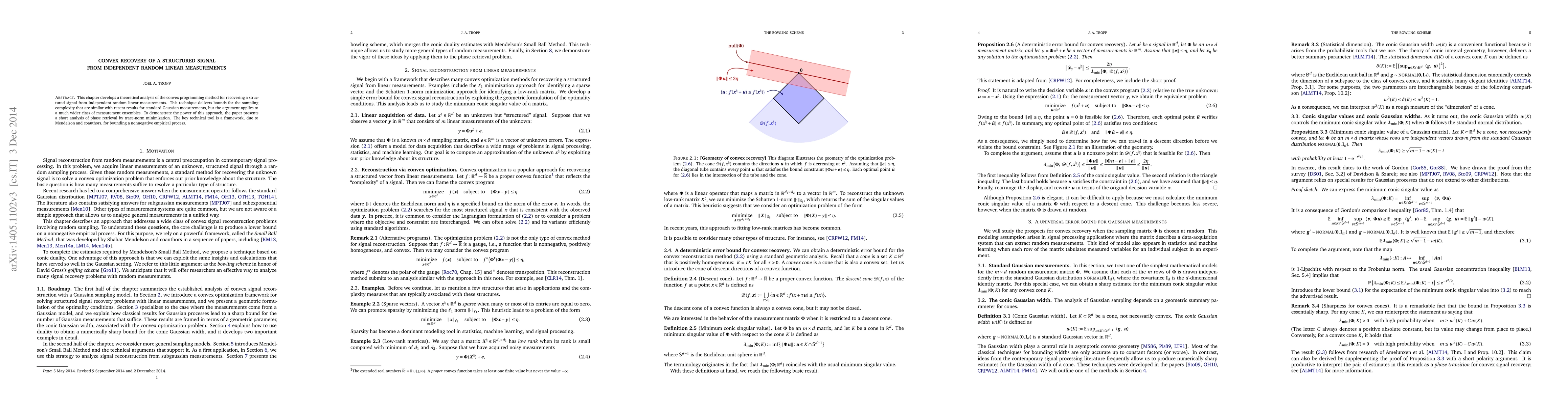 This chapter develops a theoretical analysis of the convex programming method for recovering a structured signal from independent random linear measurements. This technique delivers bounds for the sampling complexity that are similar with recent results for standard Gaussian measurements, but the argument applies to a much wider class of measurement ensembles. To demonstrate the power of this approach, the paper presents a short analysis of phase retrieval by trace-norm minimization. The key technical tool is a framework, due to Mendelson and coauthors, for bounding a nonnegative empirical process.