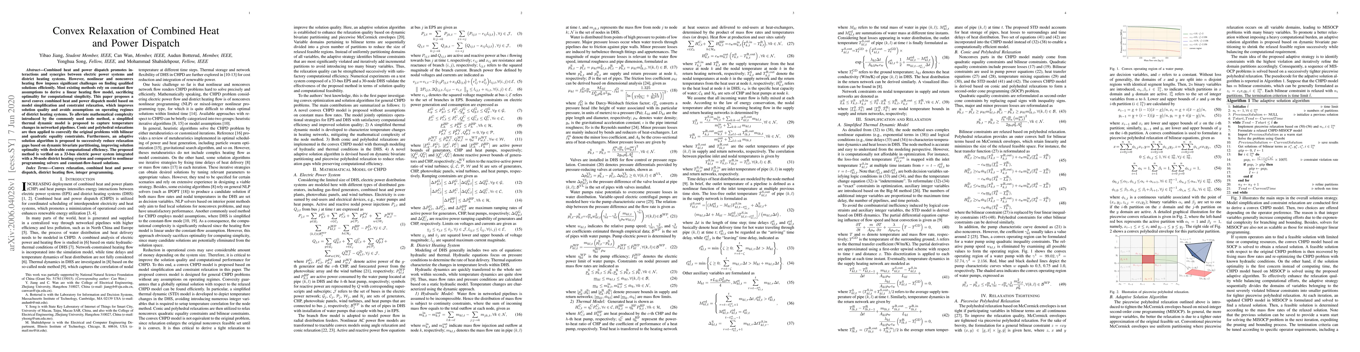 This paper proposes a convex model for combined heat and power dispatch, addressing nonlinearities through model simplification and constraint relaxation. An adaptive algorithm with conic and polyhedral relaxations enhances solution quality and efficiency, validated against nonlinear solvers and constant-flow methods.
