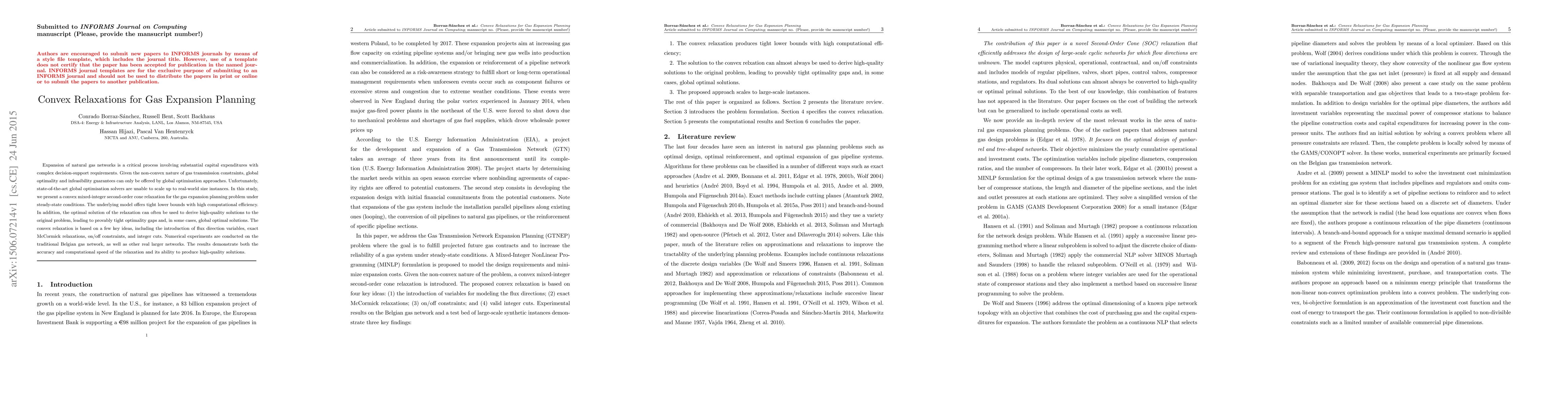 Researchers developed a convex relaxation for gas expansion planning, offering tight lower bounds with high computational efficiency. The model provides accurate solutions while improving upon existing global optimization approaches.