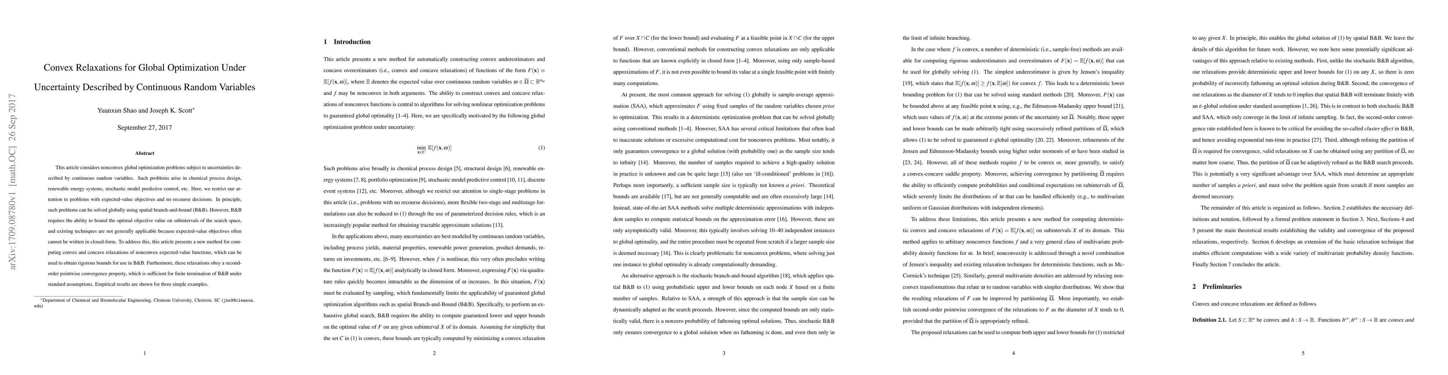 This paper presents a method for computing convex and concave relaxations of nonconvex expected-value functions to solve global optimization problems under uncertainty, using branch-and-bound algorithm with rigorous bounds.