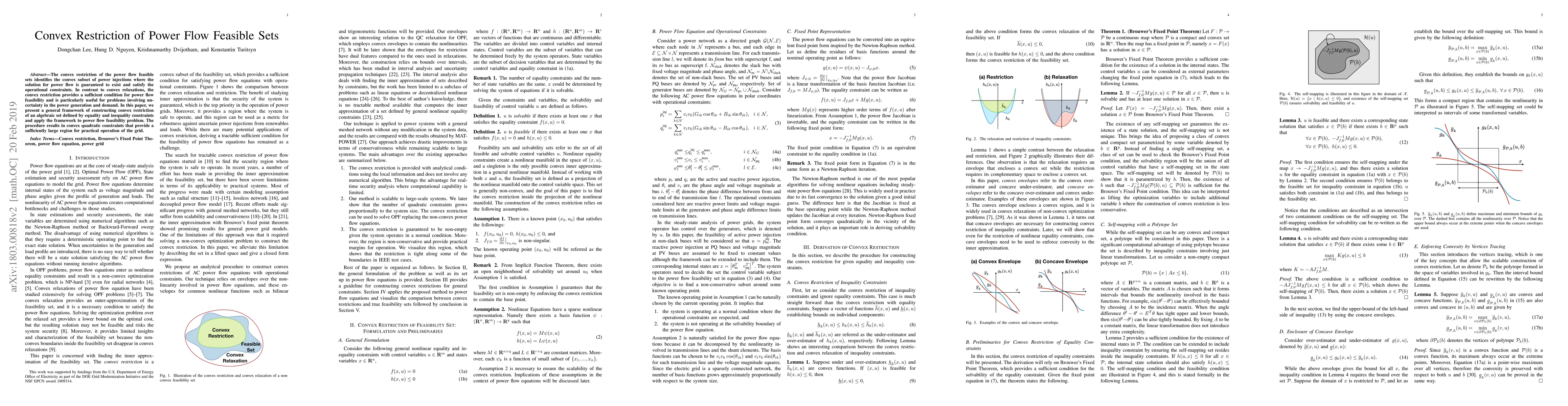 The convex restriction of the power flow feasible sets identifies the convex subset of power injections where the solution for power flow is guaranteed to exist and satisfy the operational constraints. In contrast to convex relaxations, the convex restriction provides a sufficient condition for power flow feasibility and is particularly useful for problems involving uncertainty in the power generation and demand. In this paper, we present a general framework of constructing convex restriction of an algebraic set defined by equality and inequality constraints and apply the framework to power flow feasibility problem. The procedure results in convex quadratic constraints that provide a sufficiently large region for practical operation of the grid.