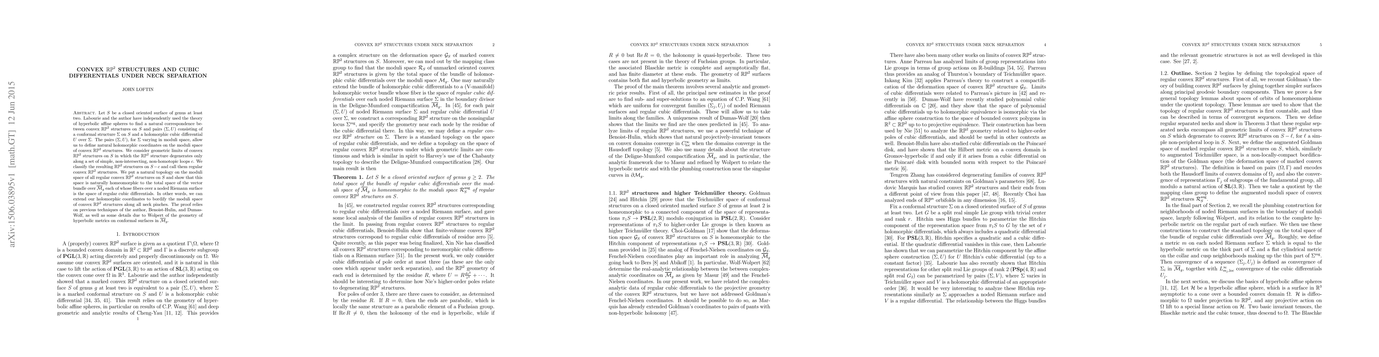 This paper establishes a correspondence between convex RP^2 structures on closed oriented surfaces and pairs of conformal structures and holomorphic cubic differentials. It classifies degenerate convex RP^2 structures under neck separation and shows that the moduli space of these structures is homeomorphic to the space of regular cubic differentials.