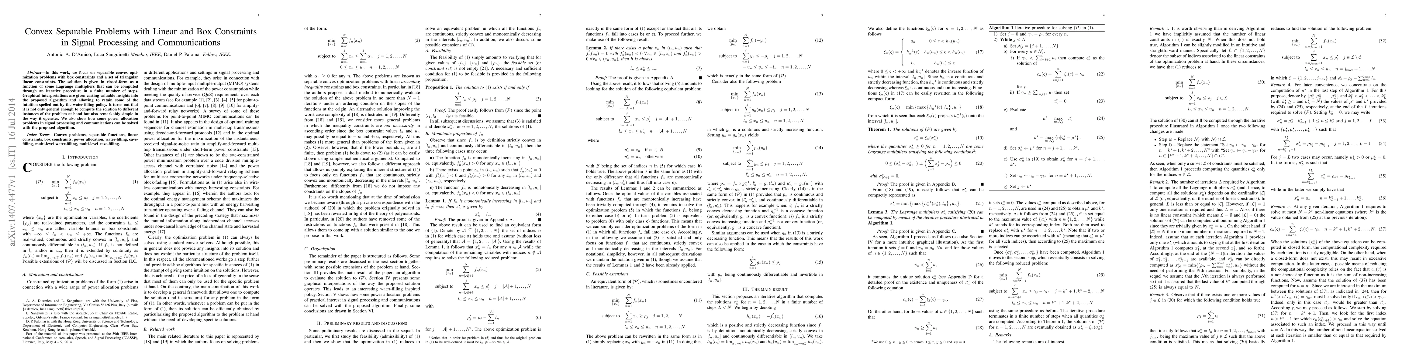 This paper presents a closed-form solution for separable convex optimization problems with box and linear constraints, derived through an iterative procedure. The algorithm is simple and general, providing insights similar to the water-filling policy and applicable to power allocation problems in signal processing and communications.