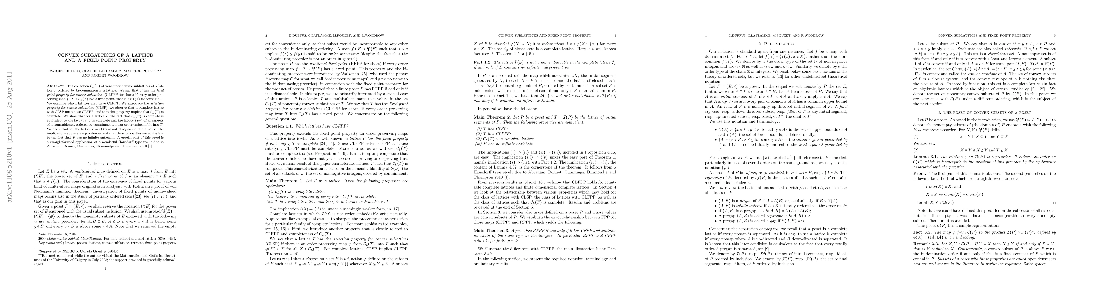 The research investigates the properties of convex sublattices of a lattice and establishes a fixed point property (CLFPP) for certain lattices, examining conditions under which this property holds.