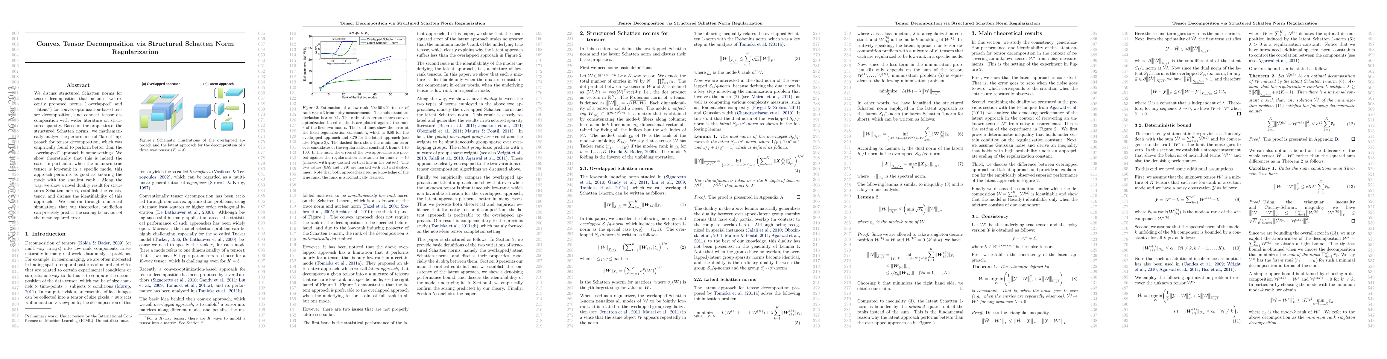 The paper proposes structured Schatten norms for tensor decomposition, analyzing 'latent' and 'overlapped' approaches, connecting it to structured sparsity literature, and providing theoretical analysis and numerical simulations.