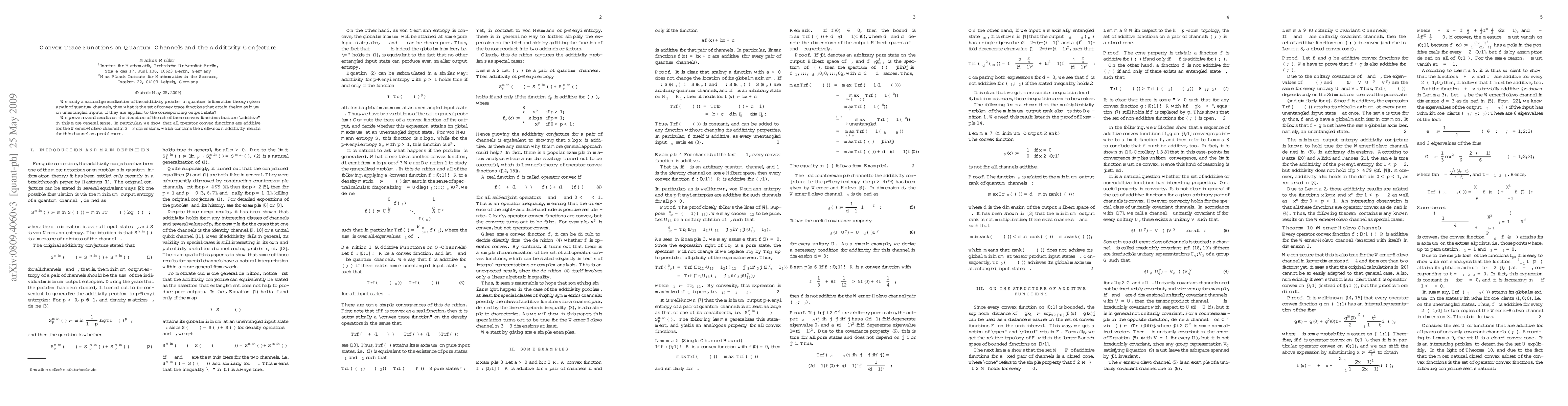We study a natural generalization of the additivity problem in quantum information theory: given a pair of quantum channels, then what is the set of convex trace functions that attain their maximum on unentangled inputs, if they are applied to the corresponding output state? We prove several results on the structure of the set of those convex functions that are "additive" in this more general sense. In particular, we show that all operator convex functions are additive for the Werner-Holevo channel in 3x3 dimensions, which contains the well-known additivity results for this channel as special cases.