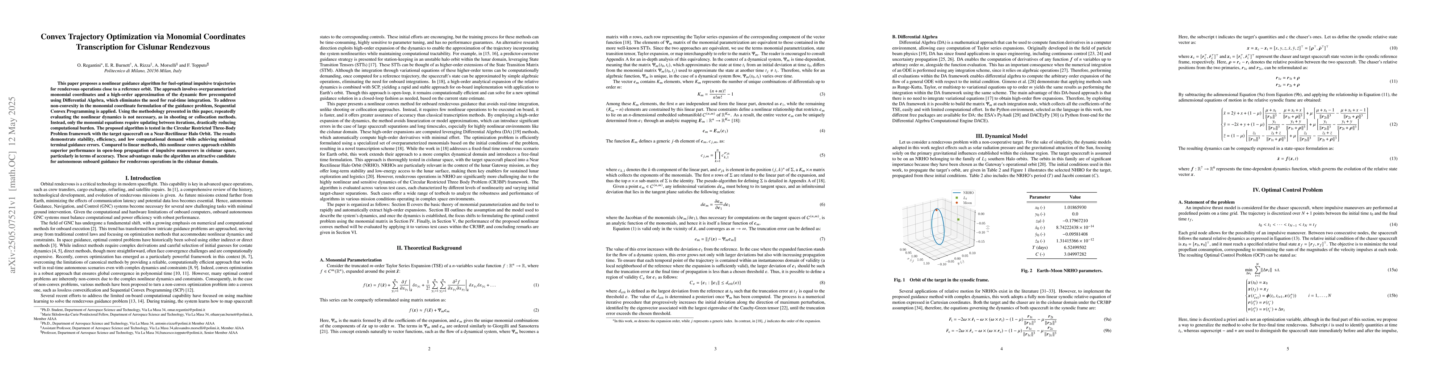 The high-order approximation of the dynamic flow precomputed using Differential Algebra and the application of Sequential Convex Programming to monomial coordinate formulation.