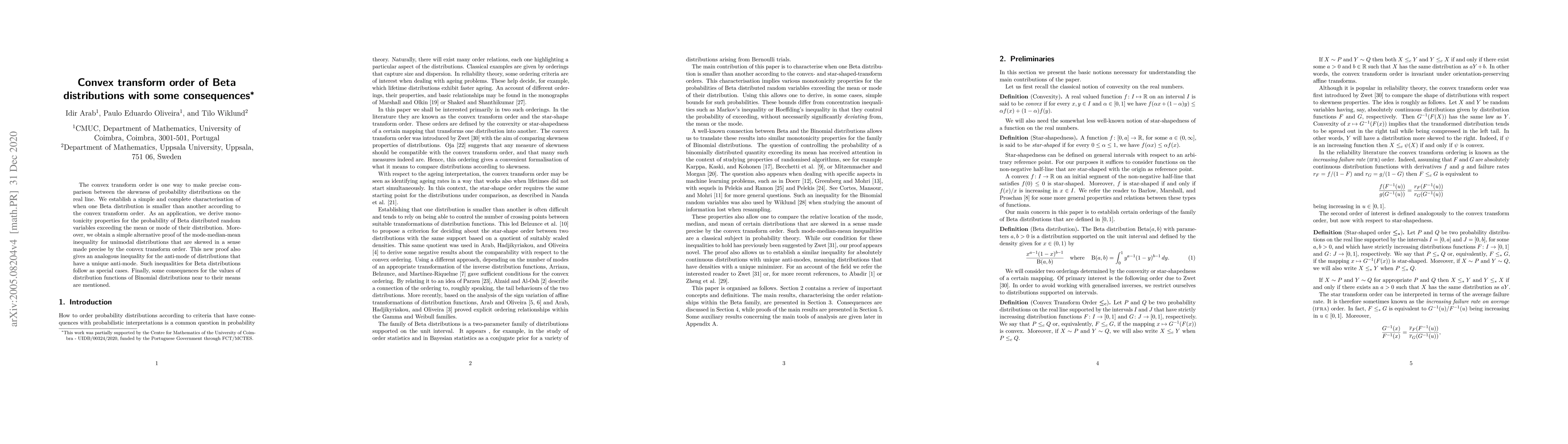 This research paper provides a complete characterization for when one Beta distribution is smaller than another via the convex transform order. It also establishes monotonicity properties related to Beta distributions exceeding their mean or mode, and offers a new proof for the mode-median-mean inequality in unimodal skewed distributions. The paper further extends this to an analogous inequality for anti-modes in certain distributions, with Binomial distribution implications mentioned.