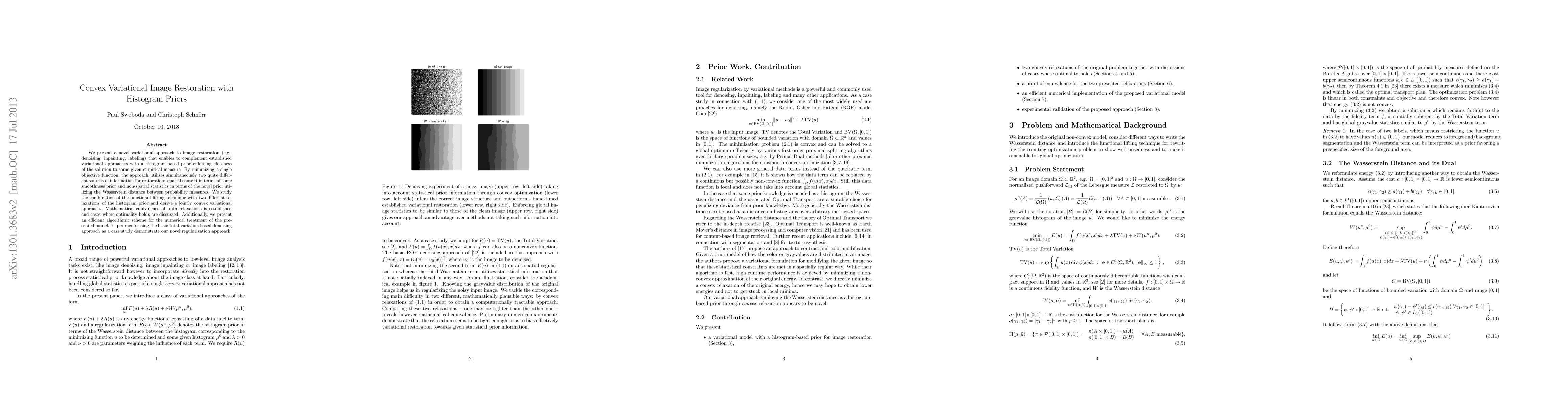 This paper introduces a convex variational method for image restoration that combines spatial smoothness priors with histogram-based priors using the Wasserstein distance. The approach leverages functional lifting and relaxation techniques to achieve a jointly convex optimization, enabling efficient numerical treatment and demonstrating improved denoising results.