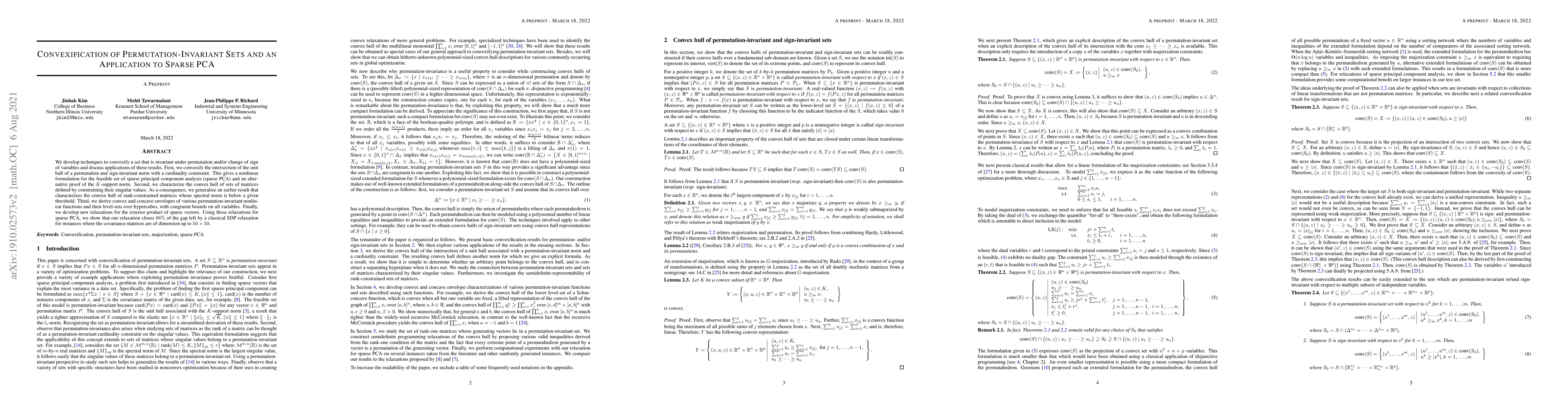 This paper develops techniques to convexify permutation-invariant sets, leading to improved formulations for sparse PCA and generalized bounds on matrix norms. It also introduces new relaxations for the exterior product of sparse vectors, closing 98% of the gap in classical SDP relaxations.