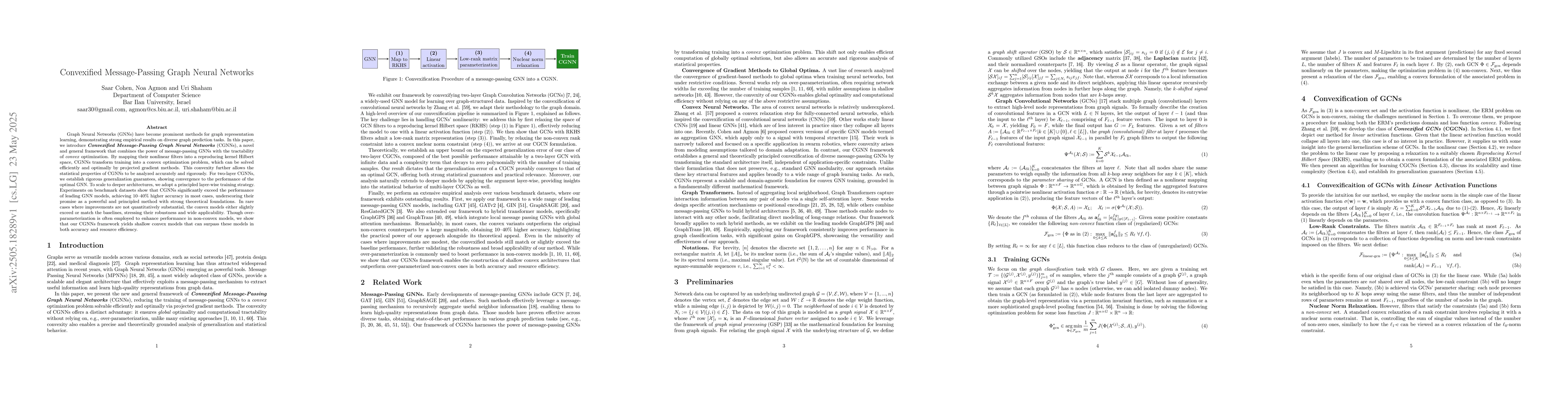 This work is novel by bridging the gap between the empirical success of message-passing GNNs and the tractability of convex optimization, providing a theoretically sound and practically efficient alternative to existing nonconvex GNN methods.