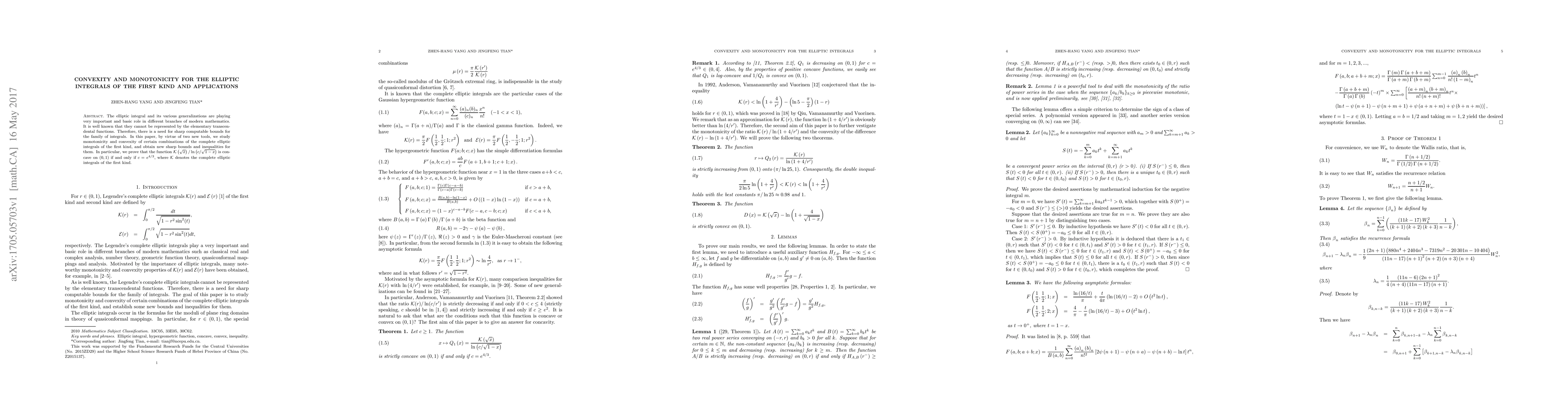 Summary: This paper investigates the monotonicity and convexity of combinations of the complete elliptic integrals of the first kind, deriving new sharp bounds and inequalities. It establishes that the function $\mathcal{K}\left( \sqrt{x}\right) /\ln \left( c/\sqrt{1-x}\right)$ is concave on $(0,1)$ if and only if $c=e^{4/3}$.