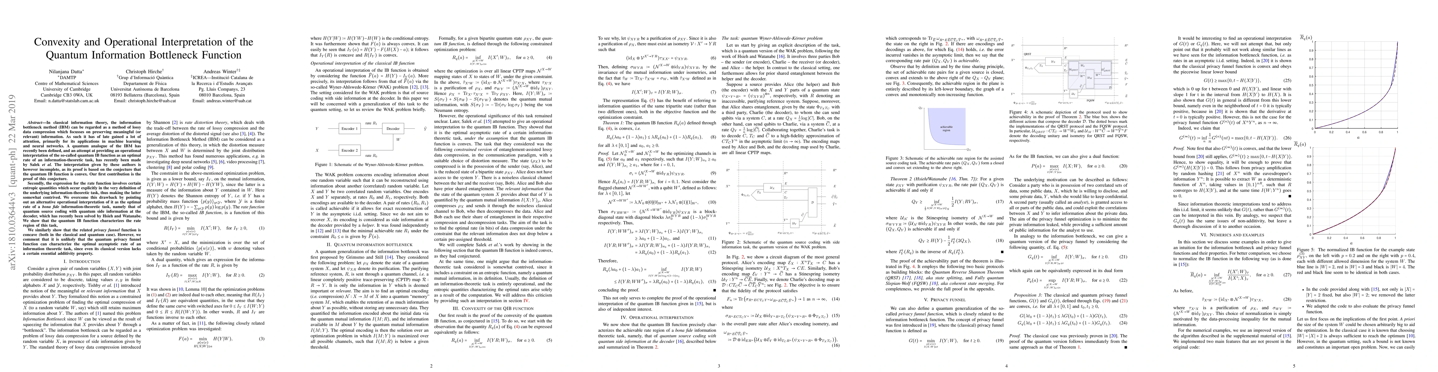 In classical information theory, the information bottleneck method (IBM) can be regarded as a method of lossy data compression which focusses on preserving meaningful (or relevant) information. As such it has recently gained a lot of attention, primarily for its applications in machine learning and neural networks. A quantum analogue of the IBM has recently been defined, and an attempt at providing an operational interpretation of the so-called quantum IB function as an optimal rate of an information-theoretic task, has recently been made by Salek et al. However, the interpretation given in that paper has a couple of drawbacks; firstly its proof is based on a conjecture that the quantum IB function is convex, and secondly, the expression for the rate function involves certain entropic quantities which occur explicitly in the very definition of the underlying information-theoretic task, thus making the latter somewhat contrived. We overcome both of these drawbacks by first proving the convexity of the quantum IB function, and then giving an alternative operational interpretation of it as the optimal rate of a bona fide information-theoretic task, namely that of quantum source coding with quantum side information at the decoder, and relate the quantum IB function to the rate region of this task. We similarly show that the related privacy funnel function is convex (both in the classical and quantum case). However, we comment that it is unlikely that the quantum privacy funnel function can characterize the optimal asymptotic rate of an information theoretic task, since even its classical version lacks a certain additivity property which turns out to be essential.